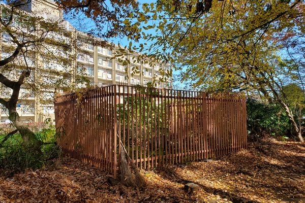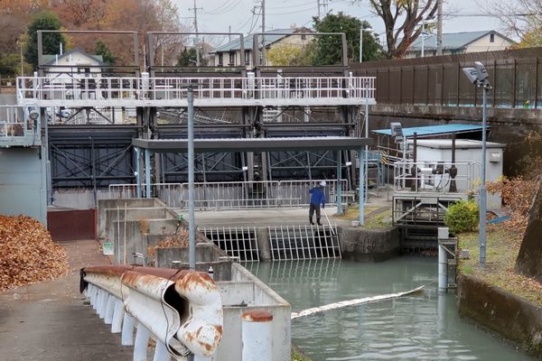 府中街道を渡り、津田塾大のキャンパスを左手に見て、過ぎる頃に、上水堤に白い建造物があります。