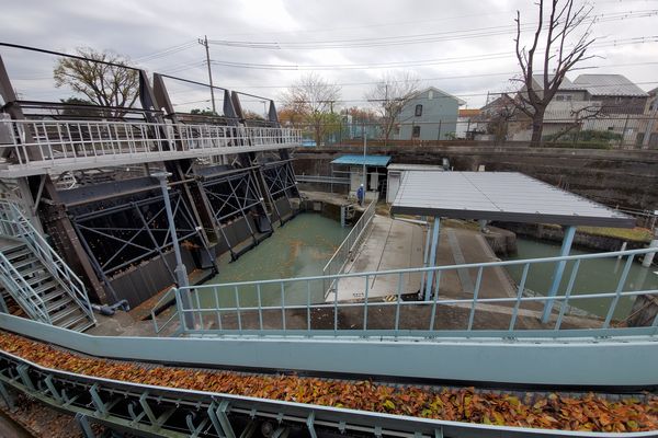 小川橋の下、新堀用水から小川用水への取水口があります。