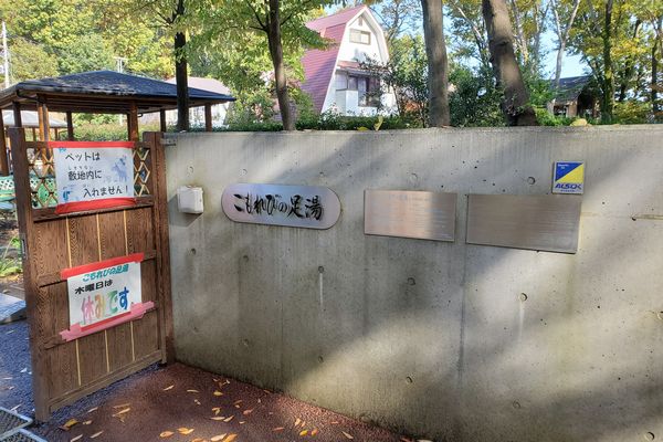 しばらく行くと、左側に清掃工場があります。その東側に『こもれびの足湯』があり、市民に開放されています。地下250メートルから汲み上げた天然水を焼却炉の余熱を利用して温めているそうです。ウォーキングの人たちが一休みしています。今は工事のため休場中でした。下の写真は11月に撮ったものです。