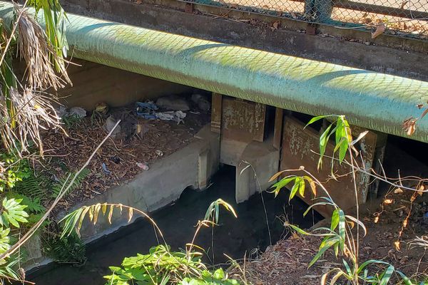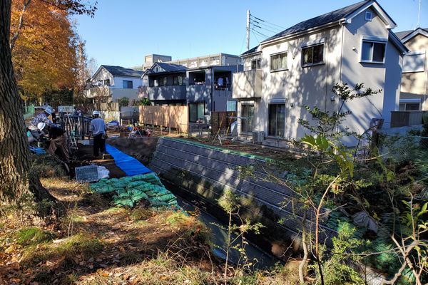 この地下を横断している武蔵野線のトンネルの作業抗で、玉川上水と新堀用水からの漏水を汲み上げるポンプが設置されており、パイプを通して新堀用水に放水しているそうです。