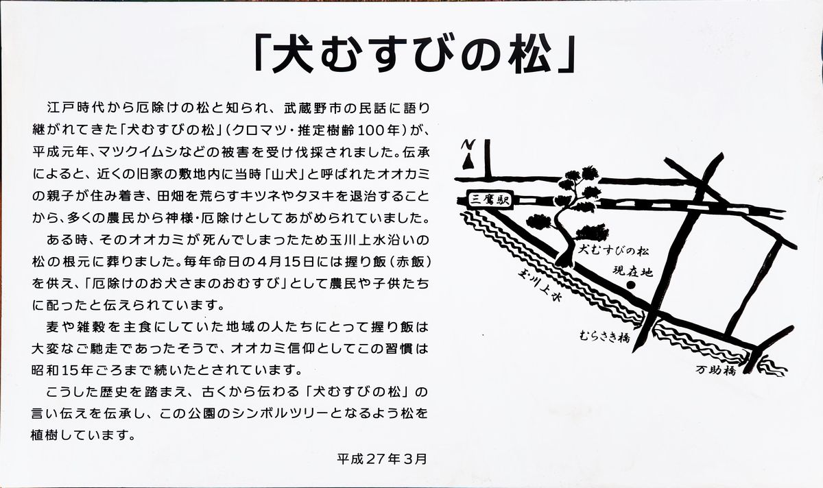 むらさき橋を北側に渡って、少し戻ったところに、「犬むすびの松」があります。