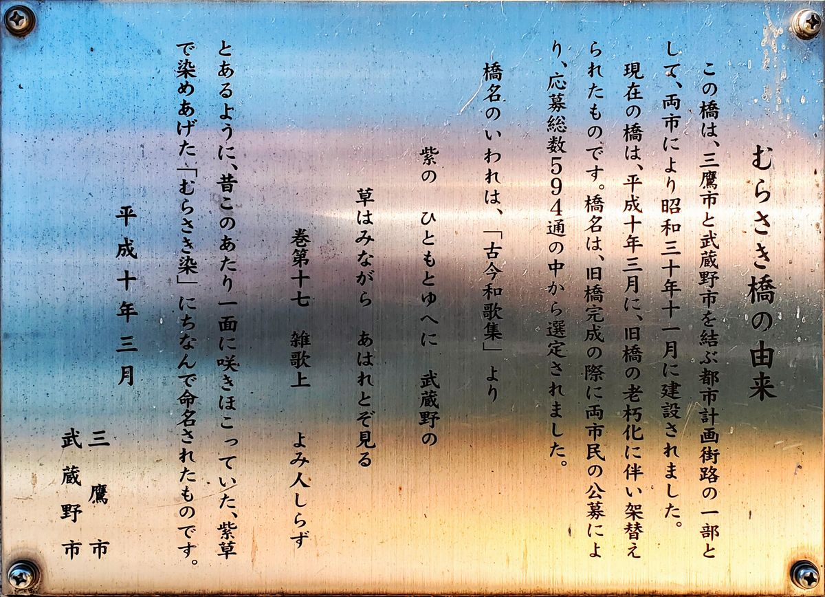 因みに、旧三鷹橋 は1957年 (昭和32年)6月に、構造材の一部に鉄道のレールを活用して架けられました。それまで、三鷹駅には北口しかありませんでした。