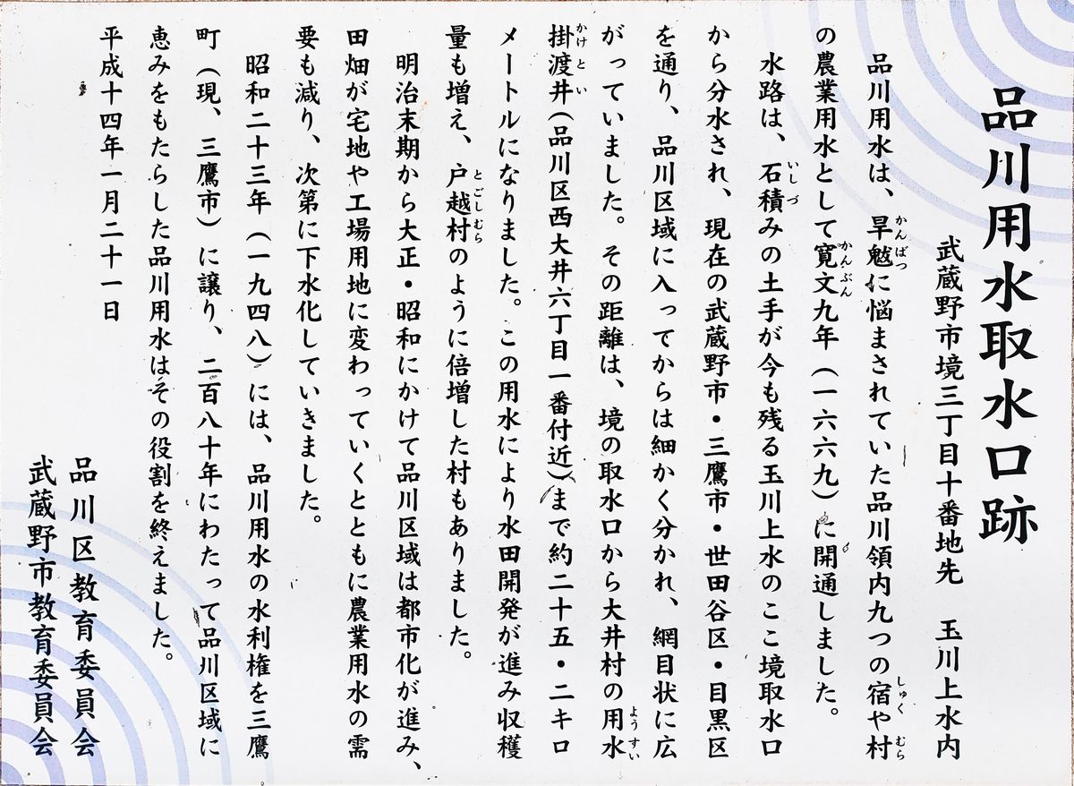 【品川用水(ウィキペディア)】