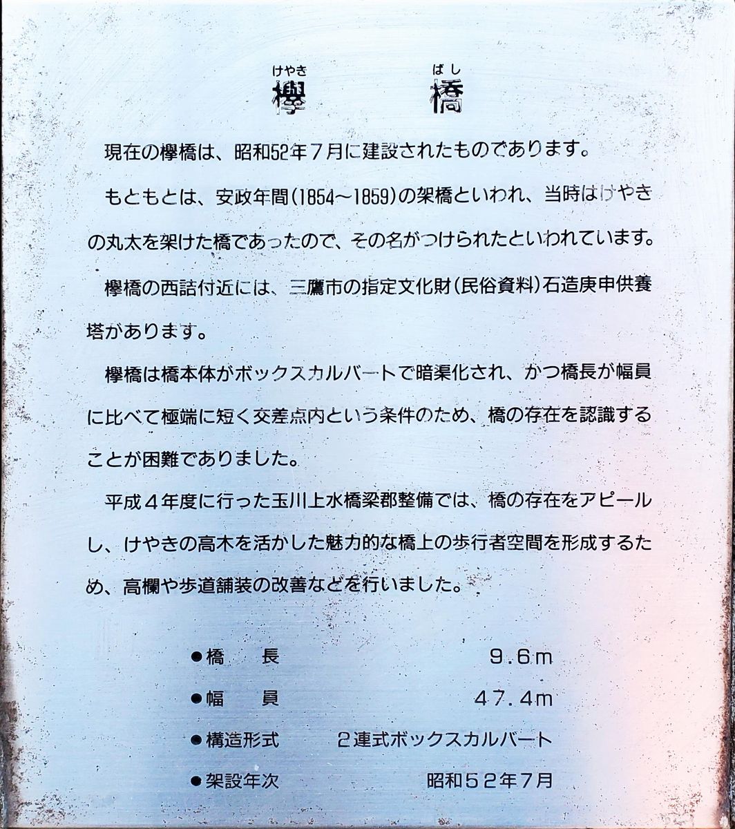 けやき橋から三鷹駅南側までの間、玉川上水は暗渠になります。