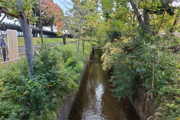 けやき橋から三鷹駅まで、玉川上水の上に人工のせせらぎがつくられています。