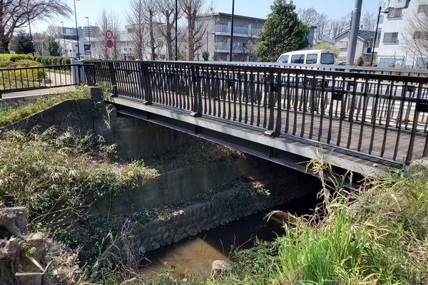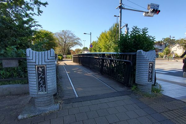 境浄水場の東の端の都道に架かる大きな「いちょう橋」の脇に歩行者と自転車専用の「ぎんなん橋」が架かっています。