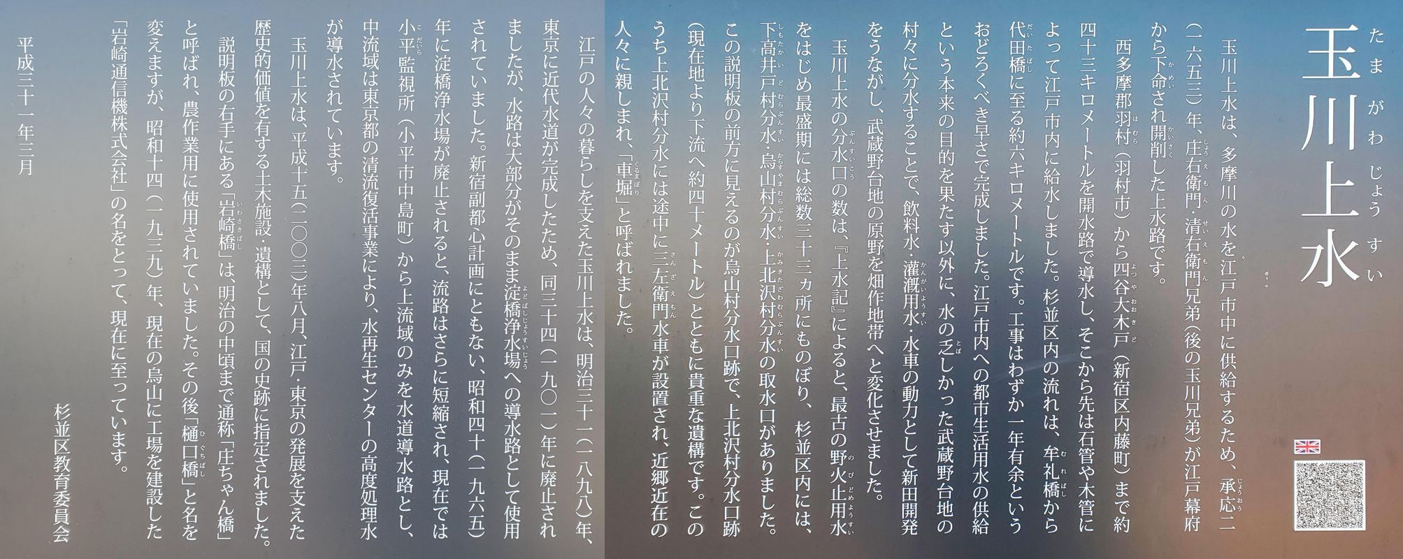 牟礼(無礼)村1ヶ村のための分水で、玉川上水の分水としては異色の存在です。