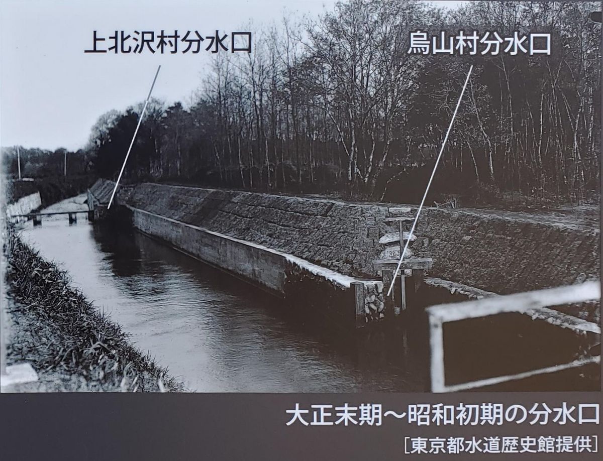 北沢分水のほうは、北沢川の流量を増やすために、万治元年(1658)に引かれたとあります。当初は、「上北沢分水」と呼ばれましたが、後に北沢川とあわせて「北沢用水」と呼ばれるようになったとのことです。