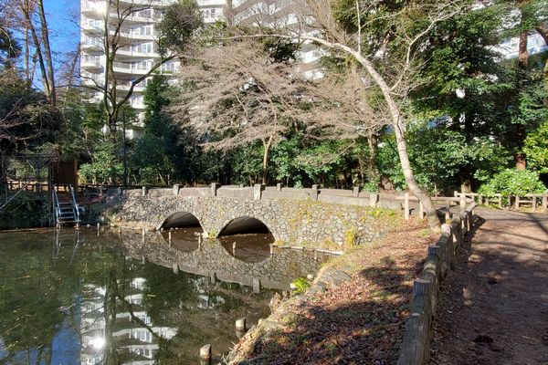「どんどん橋」の名前の由来は橋の下を流れる玉川上水の水が「どんどん」と音をたてて流れていたとか、昔は木の橋だったので橋を渡ると「どんどん」という音がしたとか諸説あるようです。