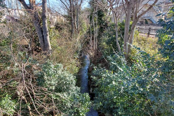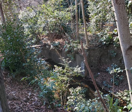 烏山用水は、烏山川の流量を増やすために、烏山村の農民が幕府に請願し、万治2年(1659)に開削されたとされます。下流で烏山川と合流し、烏山村など流域10村に補給されていました。