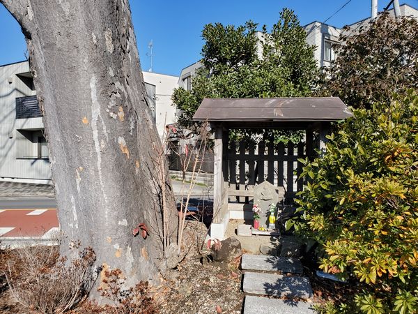 牟礼橋を杉並区側に渡った、丁度、三鷹市と杉並区の境のところ、大きなケヤキの木の下に人見街道に背を向けて庚申供養塔が祀ってあります。元禄13年(1700年)造立と彫られています。