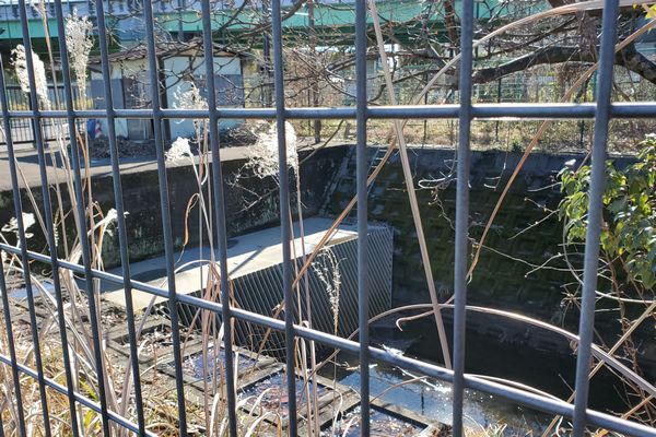 ほたる橋のすぐ下流のところに、牟礼分水取水口跡があります。