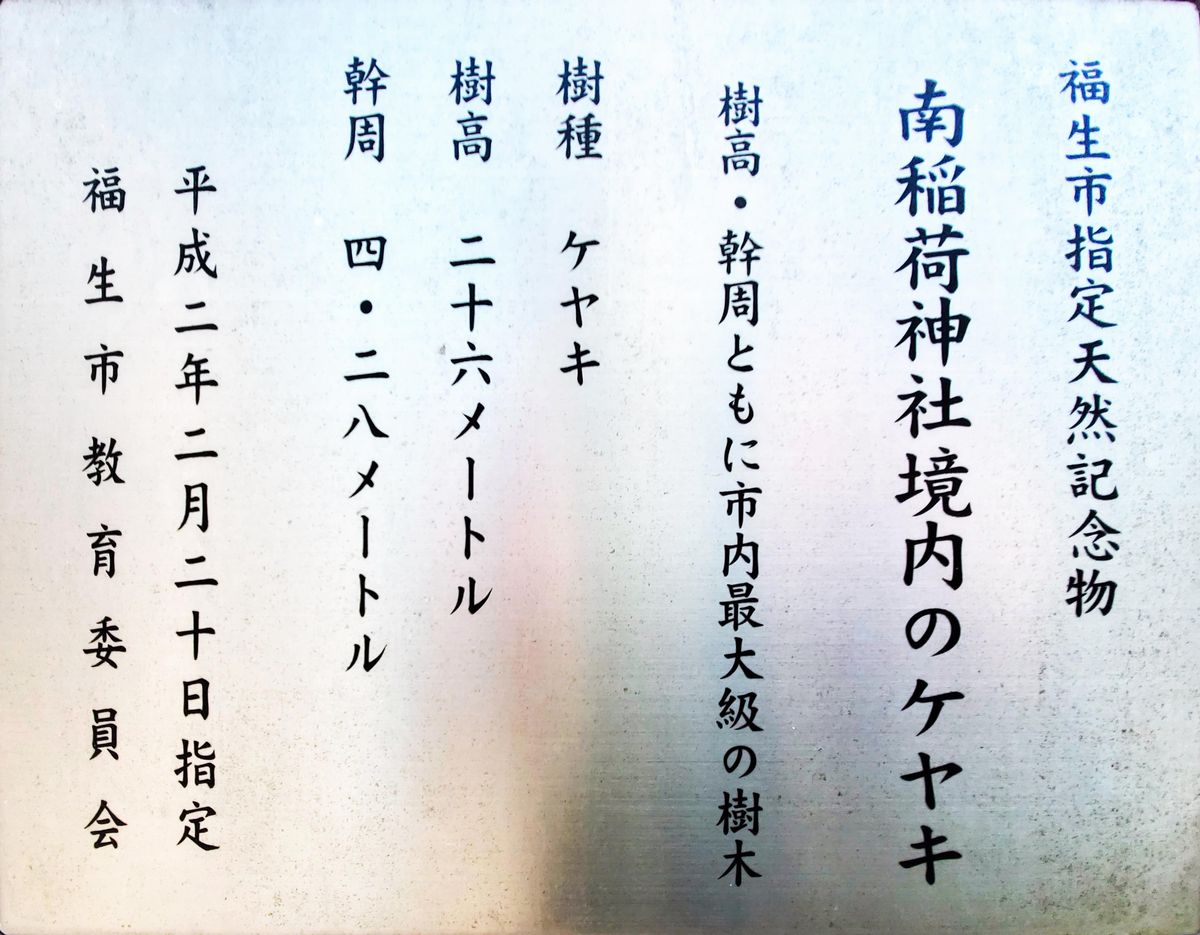 【南稲荷神社境内のケヤキ(福生市郷土資料室)】