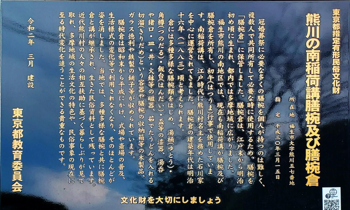 境内には、膳椀倉があります。中に保管されている膳椀とともに、東京都の有形民俗文化財に指定されています。