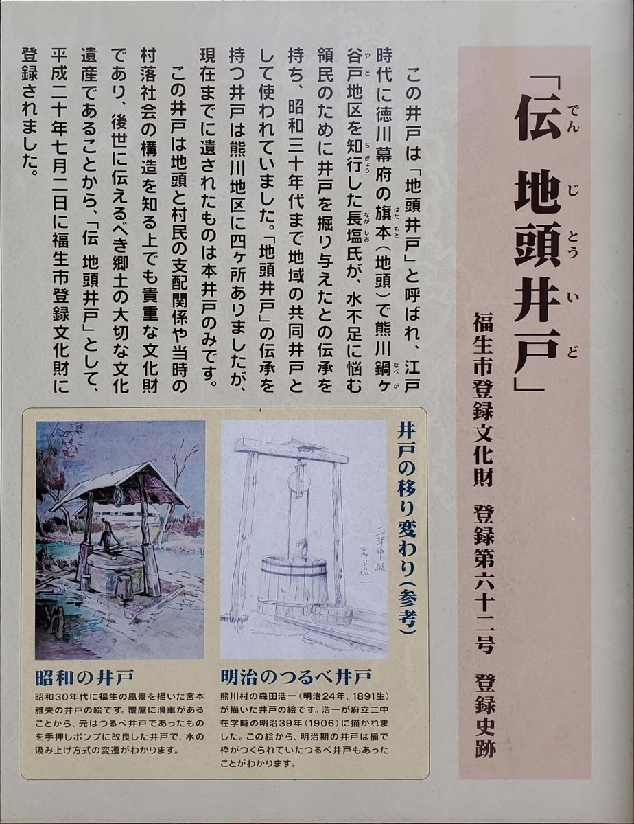 福生院の前の熊川通りを少し歩くと、「伝 地頭井戸」があります。