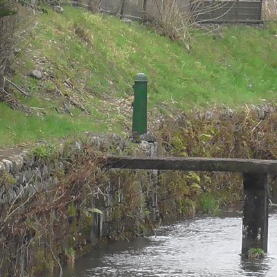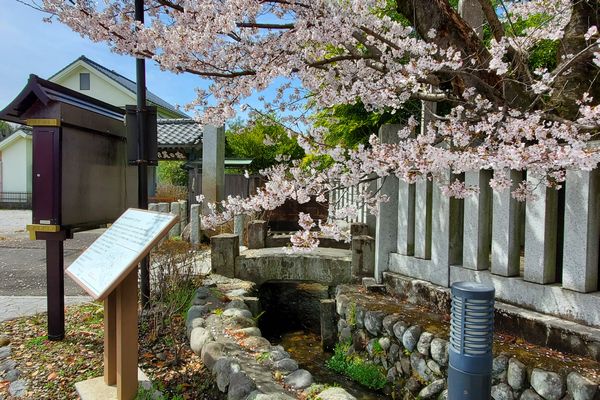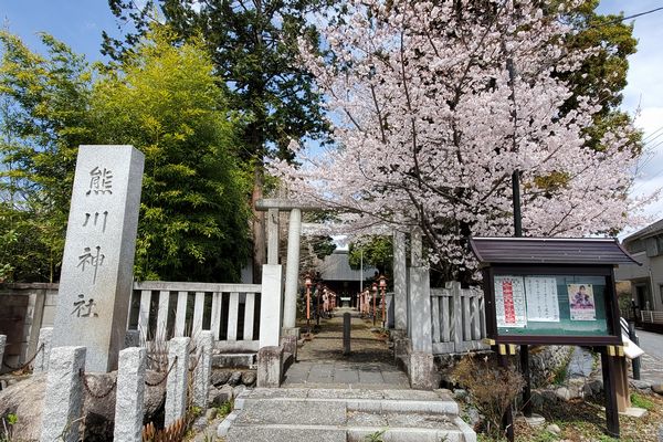熊川神社の入口近くの水路脇に説明板があります。(平成18年設置、平成31年設置)