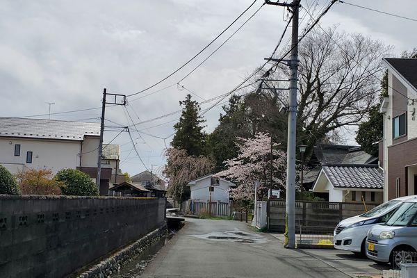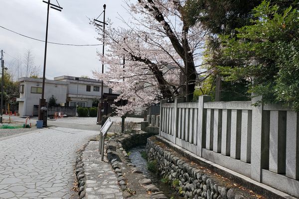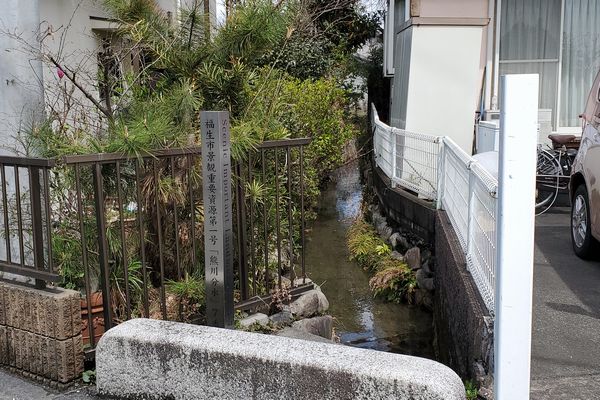 すぐ脇の路地を入って突き当たりの道に、熊川分水が顔を出します。 ここに、「2番」の表示があります。ここから先しばらくは、熊川分水は、道に沿って水路となって流れていて、風情のある景観を作り出しています。