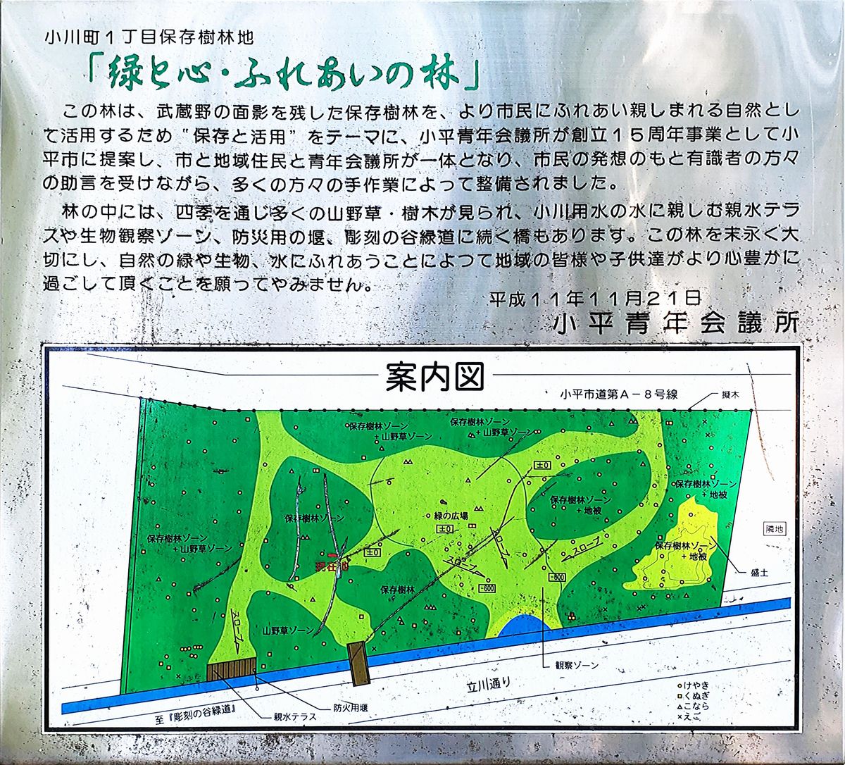 緑道を過ぎて少し歩くと、「緑と心・ふれあいの林」という雑木林があります。