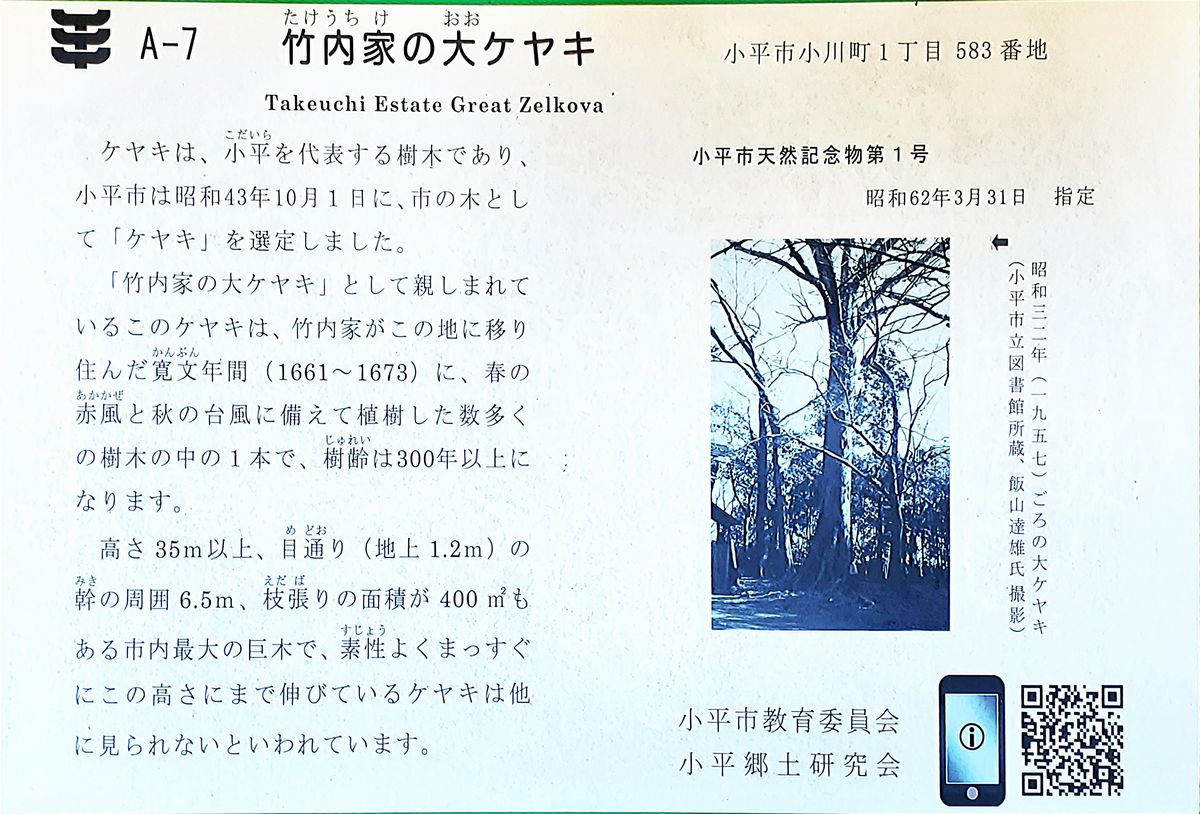 【竹内家の大けやき(小平シニアネットクラブ)】