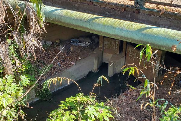 北側に行く水路は、青梅街道を横切り、クロネコヤマトの脇を流れて少し行ったところで右に折れ、青梅街道に平行して流れて行きます。