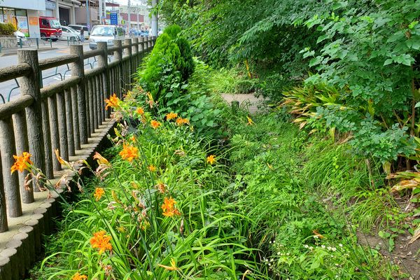 南側の水路は、150mほど青梅街道に沿って流れます。 「魁(さきがけ)の流れ」と名前がついています。