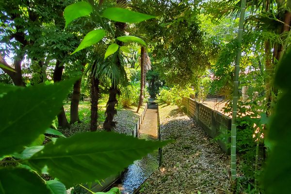 水路は農園の中を流れ、先へと行きます。