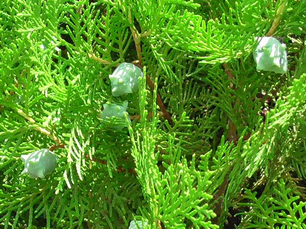 小川寺の境内にコノテガシワの若い実が付いていました。