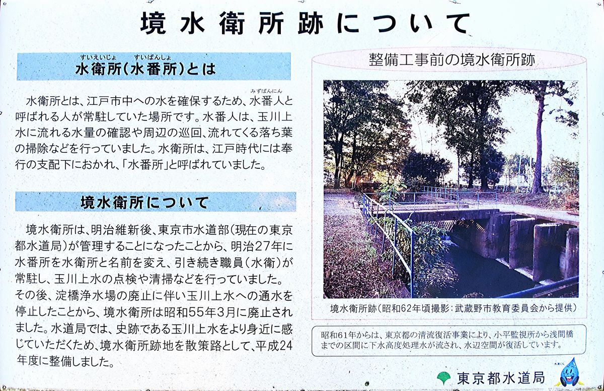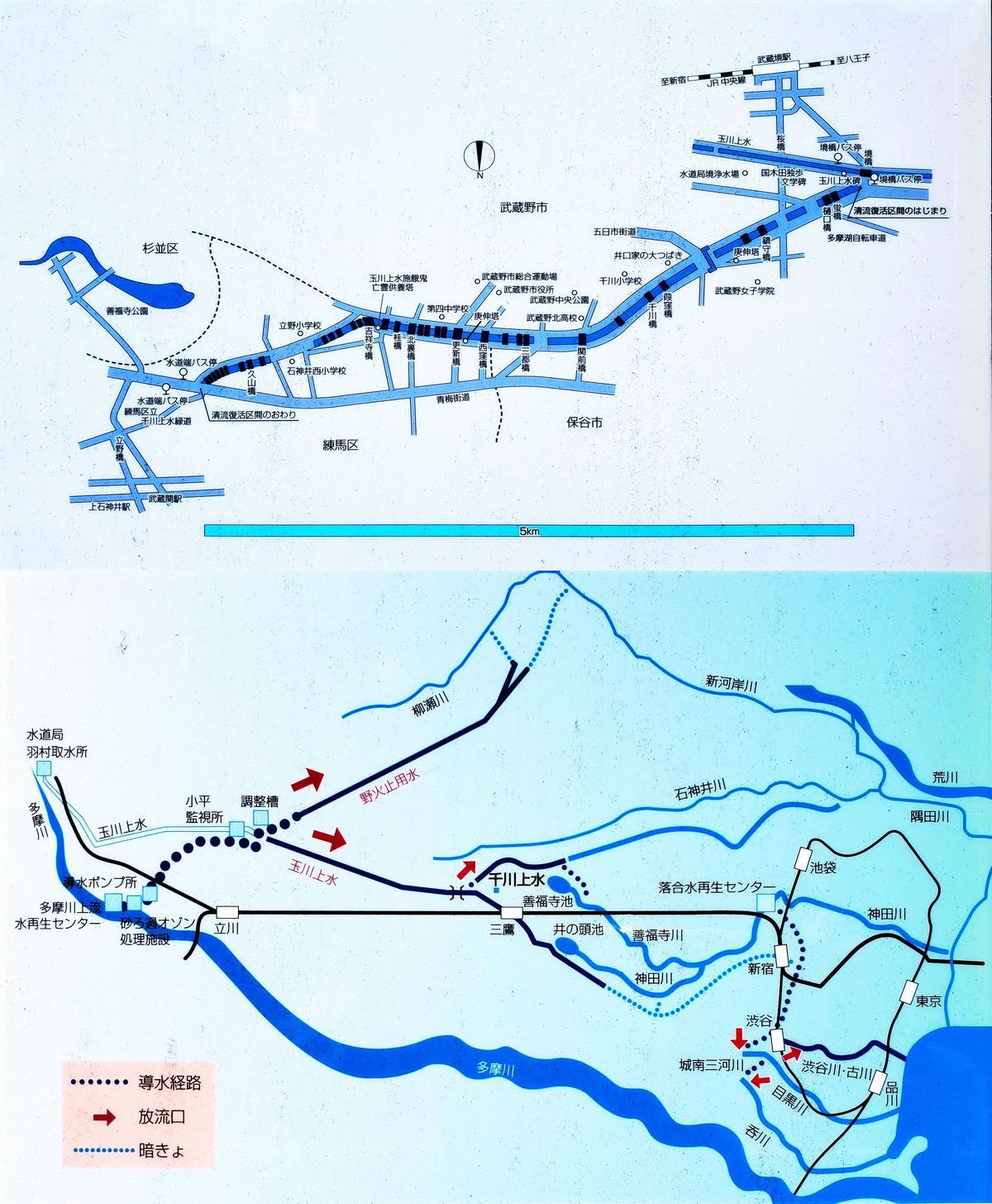 現在流れているのは、東京都の清流復活事業により、1989年(平成元年)に開渠部約5kmが下水処理水の活用により復活したものです。