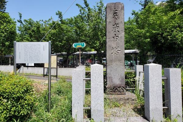 武蔵野大学正門の少し手前の歩道の脇に文字庚申塔があります。