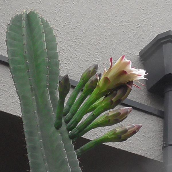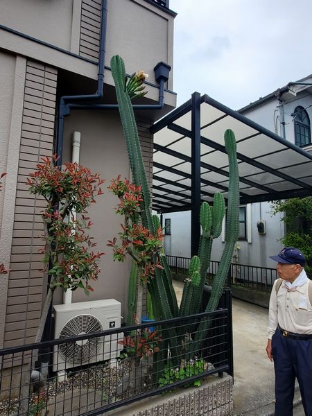巨大な柱サボテンに圧倒されました。よく見ると、上の方に花が咲いていました。