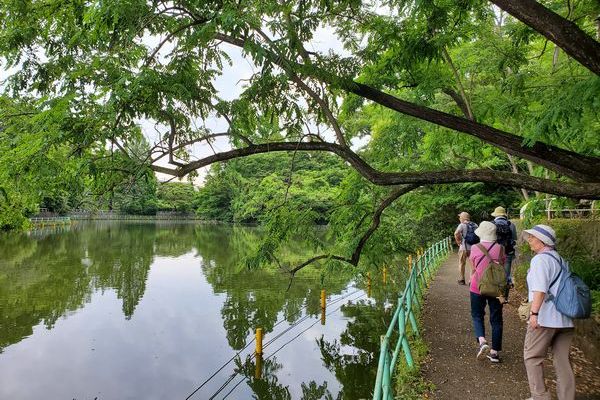 武蔵関公園に着きました。富士見池という細長い池があり、池を1周するように遊歩道が整備されています。現在は、練馬区の公園になっていて、隣接して流れる石神井川が増水した時に水を流し込む調節池の機能を持っています。